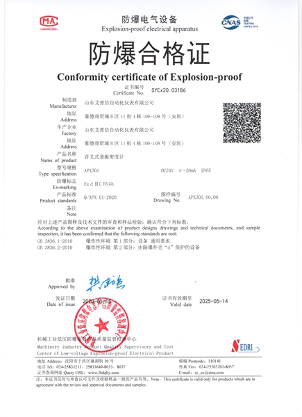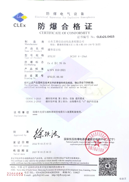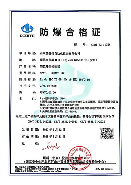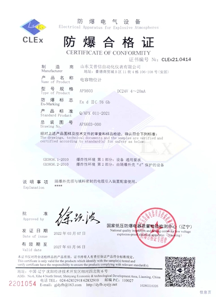 標(biāo)準(zhǔn)款音叉物位開關(guān),優(yōu)質(zhì)防爆鑄造鋁殼,不銹鋼銘牌,sus316叉體材質(zhì)。 型號:APXYC504 應(yīng)用:液體/粉體 供電:24VDC/220AC 輸出:繼電器(DPDT) 連接過程:G1''螺紋 叉體長度:100mm 介質(zhì)溫度:-30℃-80℃ 壓力:≤4MPa 防爆等級:Exd IIC T6 Gb 防護等級:IP65